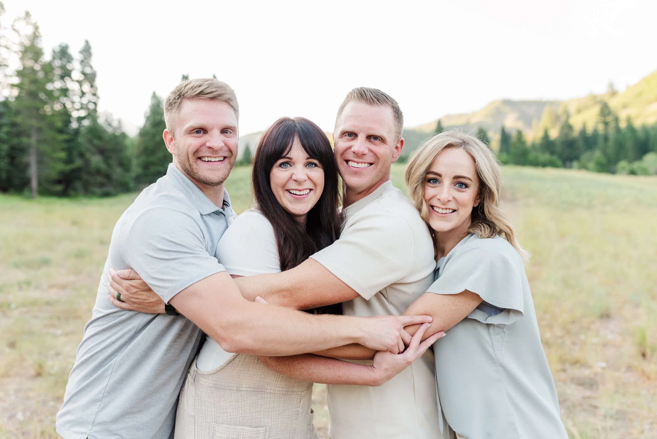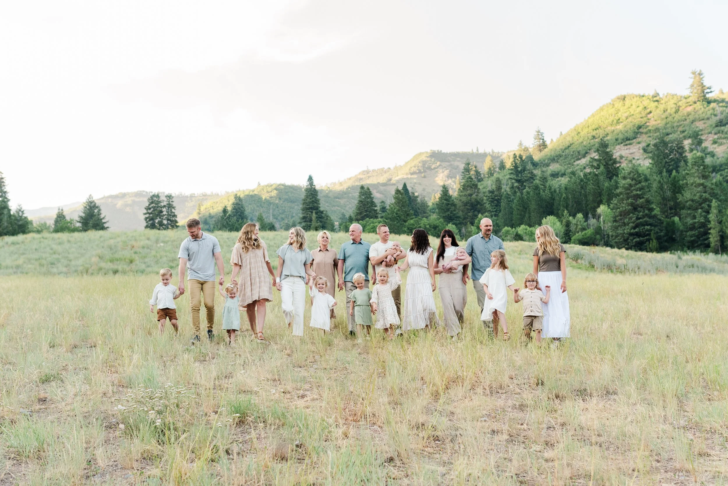 I had such a wonderful time during the Price Family photo session! It was great to reconnect with Whitnee, my former roommate from Utah State, and spend time with her family. My favorite thing about extended family photos is getting to capture not just the whole group, but also individual families and lots of fun combinations in between. The Price family chose beautiful outfits in neutrals, greens, and blues, which always look fantastic in photos. It made the session feel warm and cohesive!